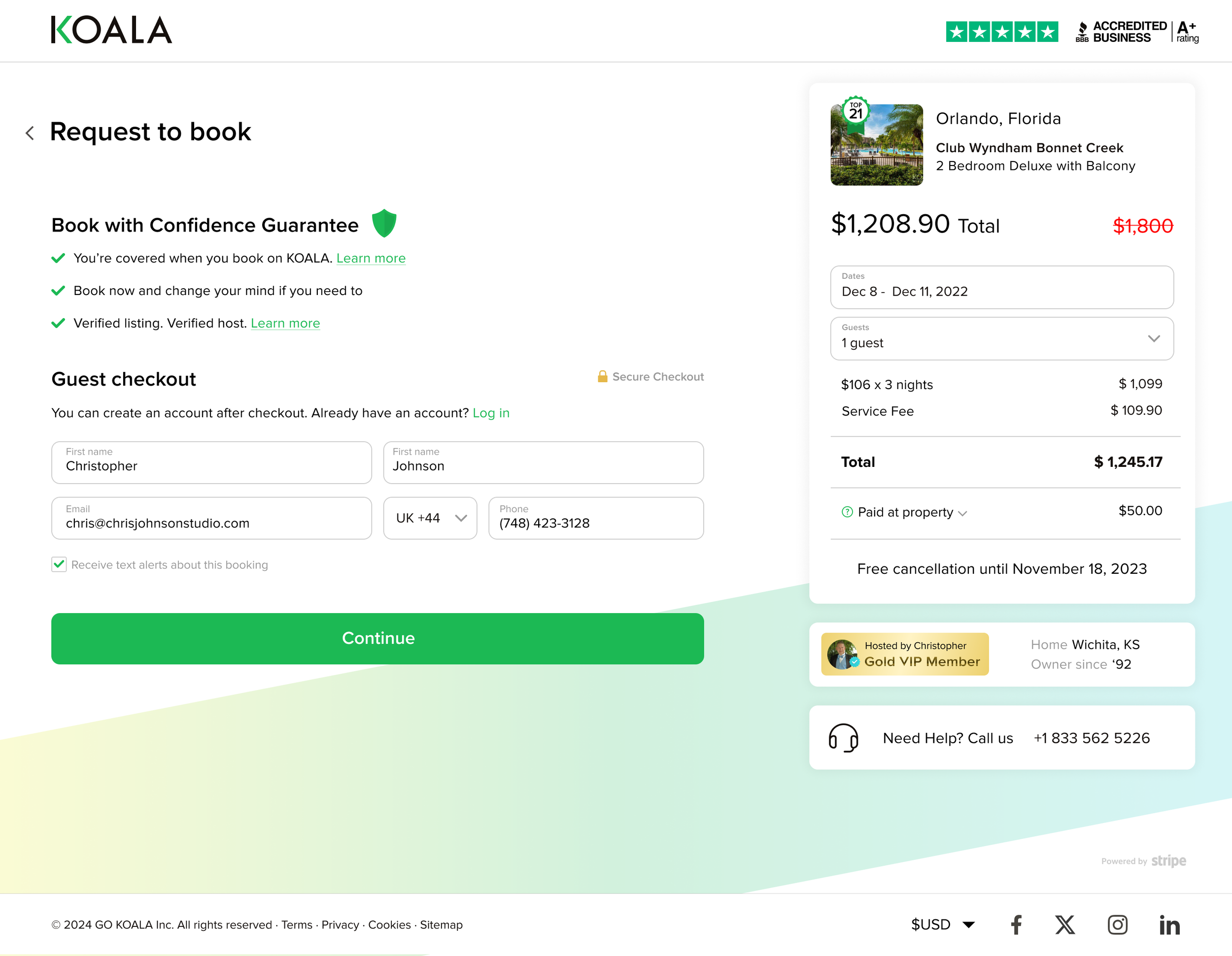 Timeshare resorts require that the guest information on the reservation exactly match their ID at check-in. Because KOALA is the intermediary between the guest and host, we need to collect this information.