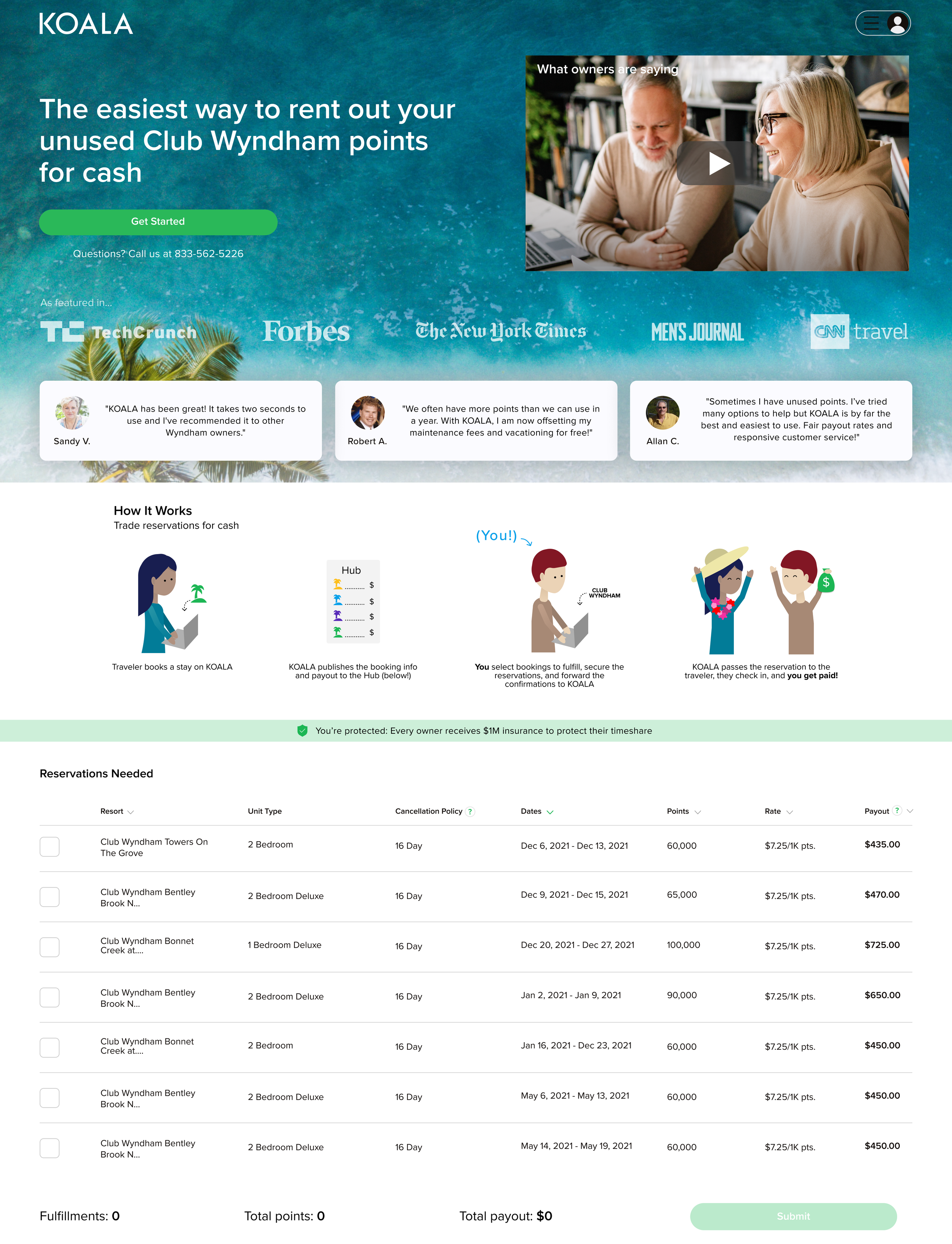 The Hub is a first-of-its-kind product KOALA created specifically for timeshare owners to monetize their points (think airline points).